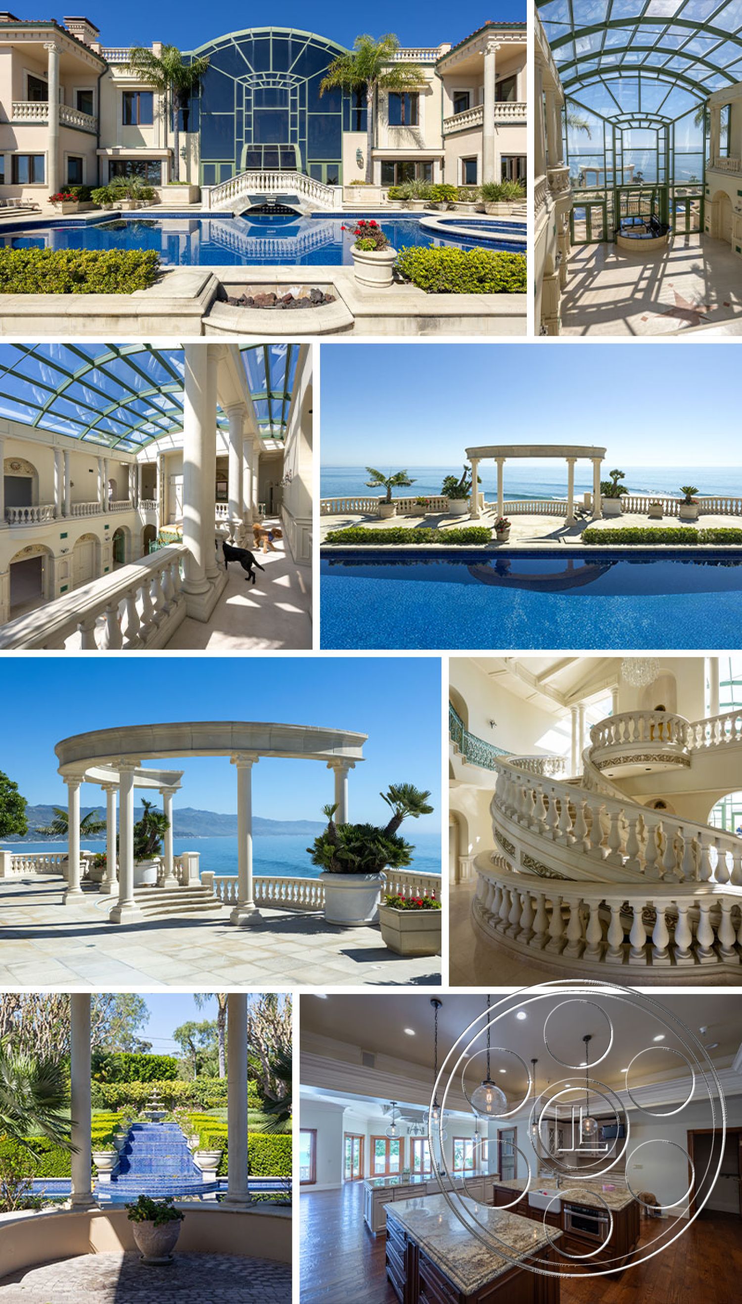 The architectural design of Pacifica Estate is a harmonious blend of classic elegance and contemporary touches. As you approach the property, sweeping driveways lined with lush foliage and palm trees lead you to an impressive facade adorned with magnificent columns and grand entryways. Inside, the grandeur continues with expansive spaces flooded with natural light, showcased through large windows and soaring ceilings. One of the standout features is the striking main hall with a dome-shaped glass ceiling, offering a breathtaking view of the sky while allowing an abundance of sunlight to pour in, thus creating an airy and inviting atmosphere ideal for capturing cinematic scenes.